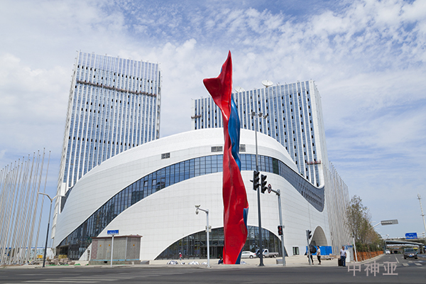 《力拔头筹》 高30.97m 不锈钢烤漆 设计:王开方 2017年 位于乌鲁木齐丝绸之路经济带旅游集散中心